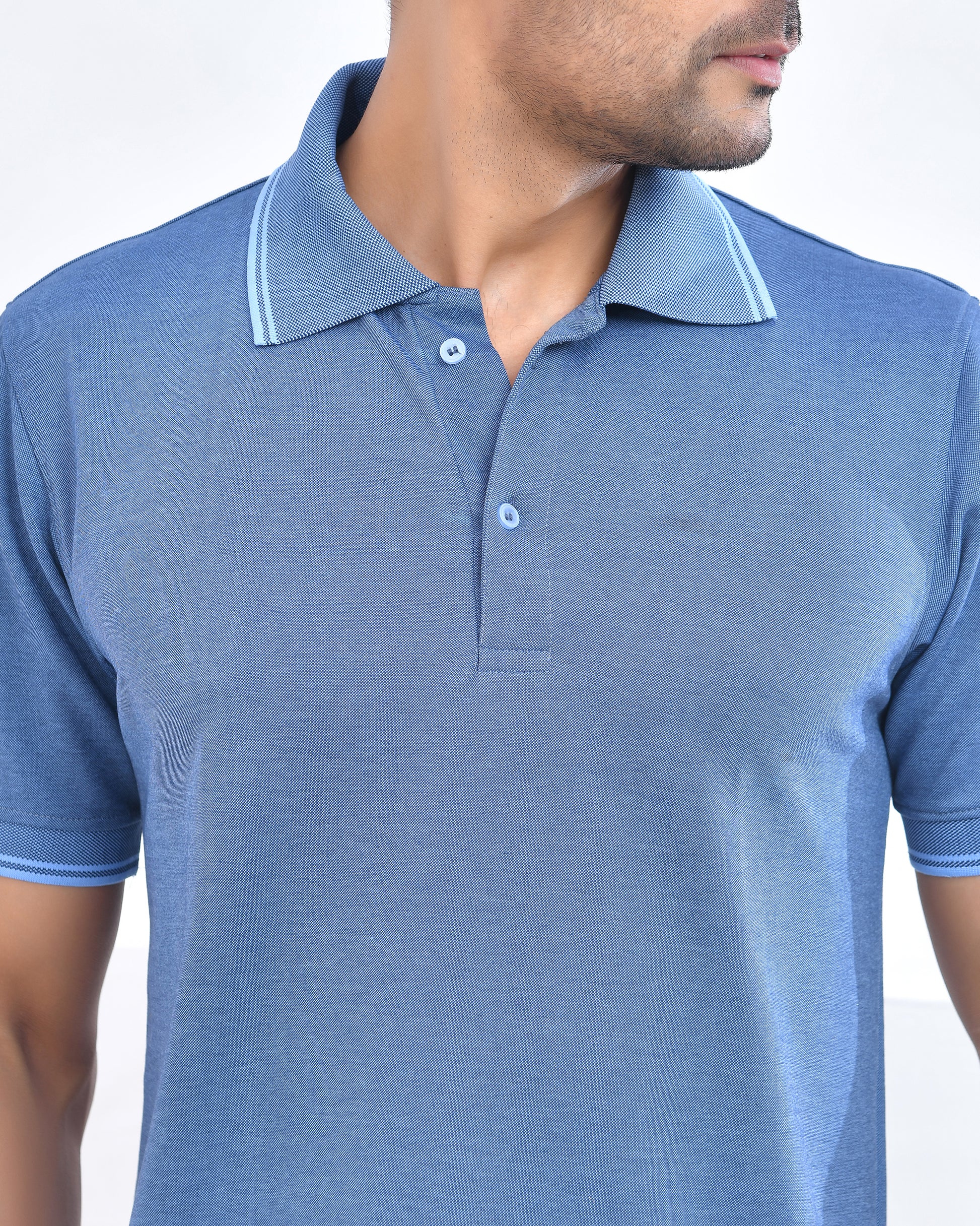 Description: Collar T-Shirt – Blue Knitted | Half Sleeves